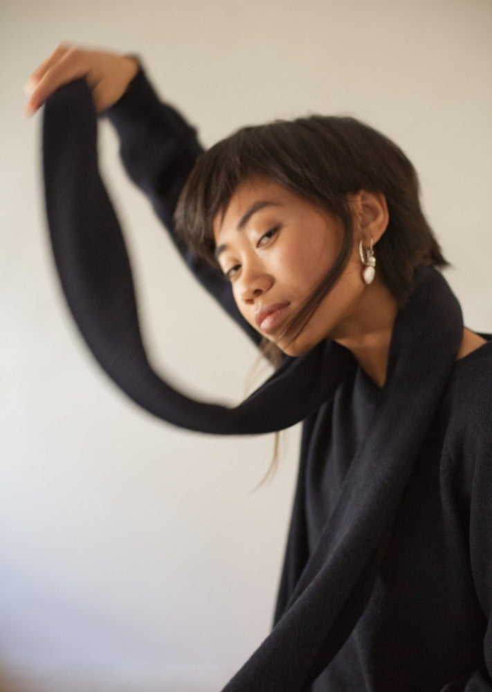- With its sophisticated double layer construction Onna gives warmth like a thick scarf, but is very light in weight. Besides it looks effortlessly elegant through its sleeve-like design.